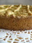 Che poi, a ben vedere, non è proprio una frolla, data l'assenza del burro e la presenza del lievito; si tratta di una crostata-torta, dove la "simil frolla" rimane molto morbida, infatti è bene non stenderla troppo sottile altrimenti si rompe; la crema, invece, sembra una gelatina, è fresca e profumatissima!!!