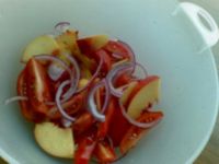 Ok, il tempo degli ultimi giorni non è stato il massimo, soprattutto nel nord Italia. Se oggi siete tra i fortunati che godranno del sole e avete pronto tutto il necessaire per il vostro picnic celebrativo d’estate, vi lascio un’altra ricetta per ovviare alla solita insalata mista, sempre che non siate dei convinti tradizionalisti. L’ho trovata sulle pagine food del New York Times, l’ho preparata e assaggiata e non mi è affatto dispiaciuta, per quanto insolita. Servono 3/4 pomodori da insalata o una manciata di daterini ben lavati, una pesca [...leggi]