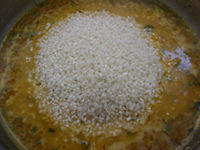 In un tegame di coccio fate fondere il burro nell’olio e tostatevi i chicchi di riso per 2 minuti, mescolando accuratamente con un cucchiaio di legno. Aggiungete l’acqua, il succo dR [...leggi]