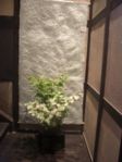 和紙のタベストリーと山野草