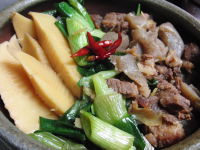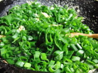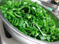 先日ご紹介した「葉たまねぎ」上部の葉の部分ですが・・・・せっかくなのでこれを主役級にしたお料理にしたい。という訳で・・ボール一杯に刻んで・・・カラ煎り後、味付けしたおからに投入。しんなりするまで、炒め煮しました。具は、大量の葉玉ねぎの葉のみ。これが、ご飯に合うのです。そして、昨夜のもう一品。牛スジとコンニャク、そして筍に葉玉ねぎの葉。スキヤキみたいな甘辛味。こちらも、ご飯のすすむ一品であります。こ [...leggi]