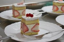 ・・・でご紹介した、スフレ生地を使用した、苺のケーキです♪