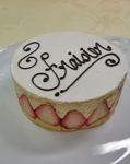 いちごたっぷりで、とても幸せな気持になります(*^。^*)上面は苺でデコレーション・・と思っていたのですが、たまには文字書きもしなくては・・ということで、皆さんにも文字書きに挑戦して頂いております。