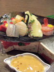 中とろをはじめとする、色鮮やかなお造り。エルブジ風調理をお醤油に利用された泡醤油。これが、うまくお刺身に絡んで、とても美味しい〜♪