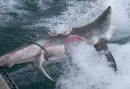 La notizia corre sul web da una ventina di ore: uno squalo gigante tra i 10 e i 15 ft, oltre i 6 metri e mezzo, avrebbe attaccato un esemplare più piccolo nel mare del Queensland. Ci sono due foto a dimostrazione dell’avvenimento dell’espisodio di cannibalismo. La storia sarebbe partita, seguendo la cronologia delle google news, il 24 ottobre dal CourierMail e seguita poi da una da una tv locale che avrebbe costruito il servizio (il video in alto) basandosi appunto sulla foto che appare nel video. Lo squalo sarebbe stato catturato tra Stradbroke Island e Brisbane.
