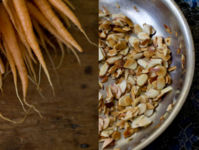 This is the sort of salad to make when you come across the tiniest of baby carrots. Carrots that fall somewhere between a chopstick and a pencil in thickness, certainly no thicker than a Sharpie pen. You typically find these carrots at farmers' markets, bushy-topped and tied in bunches. I'm the person picking through the table to find the bundles with the most little guys.