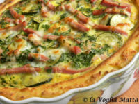 L'altro giorno avevo voglia di una torta rustica da preparare con delle zucchine che ormai agonizzavano in frigo già da un pò e che era urgente consumare prima che prendessero la strada della pattumiera....Non avevo però nè pasta sfoglia nè brisèe e la voglia di uscire era pari a zero !Ho trovato in dispensa un pacchetto di semolino,mi si è accesa la famosa lampadina e....Ecco qui una gustosa torta rustica di semolino, zucchine e prosciutto, carina, vero?