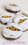 Se ormai mi conoscete abbastanza bene non avete certo bisogno di sapere che per me ogni scusa è buona per festeggiare... non adoro la festa di halloween (non la sento mia) ma è pur sempre una festa e così mi ritrovo a truccare e vestire i miei bimbi, a comprare sacchi e sacchi di caramelle e a preparare dei dolcetti mostruosi per i loro amichetti. E non potevo certo non fare questi biscottini mummia.. L’idea non è mia, è presa da un giornale di cucina (non ricordo il nome) che ho sfogliato in attesa del mio turno in negozio. La versione ufficiale prevedeva dei muffin ma io ho pref [...leggi]
