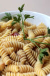 Ingredienti per 4 persone350 gr. di fusilli3/4 fettine magre di vitello3 pomodori medi5/6 cucchiai di olio extravergine d'oliva1 spicchio d'aglio1 bicchiere d'acquaabbondante origanosale q.b.