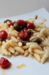 Ingredienti per 4 persone400 gr. di malloreddus sardi4/5 cucchiai di mollica di pane5/6 cucchiai di olio extravergine d'oliva8/9 pomodorini datteriniuna decina di olive verdi schiacciate denocciolate7/8 filetti diliscati di acciughe sott'oliomezza cipolla rossa di Tropeamezzo porrouna manciata di semi di finocchio