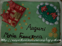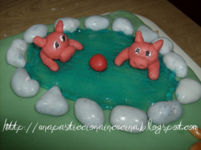 oggi ho postato la torta del mio compleanno , realizzata interamente da me ; ogni giorno pubblicherò una delle ricette realizzate per la mia ricorrenza , intanto vi presento la mia Prima torta in MMF , frutto di un'intera settimana di lavoro , per riuscire a realizzare i maialini e oggetti vari! Ecco la mia rappresentazione : 2 maialini che giocano a palla nell'acqua
