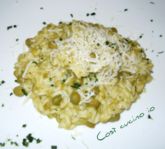 E’ un piatto tradizionalmente veneto. La mia versione non rispetta esattamente la tradizione che prevede una pietanza più “brodosa”, quasi una minestra, ma vi assicuro che questo semplicissimo morbido risottino è veramente una delizia.