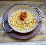 Per il circuito #Romanesco ho messo stavolta le mani in pasta, nel senso che ho cucinato un primo piatto, tipico della mia città, la cacio e pepe. Sembra facile: due ingredienti e via, ma è una bella sorpresa ogni volta che si riesce a trovarla "giusta" per il proprio palato. Di sapidità prima di tutto, e con un pepe degno di questo nome. Al Salone del Gusto nel 2012 nello stand della Garofalo avevamo cucinato con Claudia una cacio e pepe per 50 persone, con l'aiuto di uno chef; e da allora mi sono rimasti impressi alcuni piccoli accorgime [...leggi]