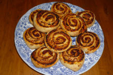 Gli appassionati dei "rotoli" (eh sì, esiste anche questa categoria di cultori gastronomici) saranno soddisfatti da questa ricetta, visto che queste focaccine si ottengono sezionando un grande rotolo di focaccia. E devo dire che all'interno del genere, sono, pur nella loro estrema semplicità, una variante divertente e gustosa.