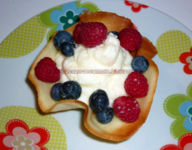 Ecco un dolcino semplice e veloce per un dopo cena con amici. Una fresca mousse al limone (ho trovato la panna senza lattosio, non so come sia possibile perché non è vegetale, ma insomma non mi ha fatto male), con tanti frutti di bosco, in una golosa e croccante cialda.