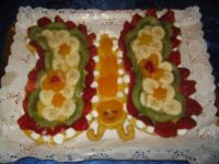 Linda ha realizzato la crostata di frutta a forma di farfalla per festeggiare Carla per il Master .