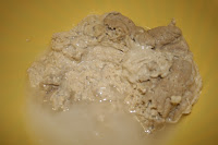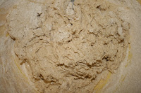 Continuate a mescolare (io solitamente utilizzo la forchetta) e aggiungete una quantità di farina pari al peso della vostra pasta madre.