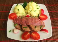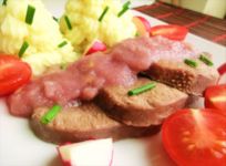 Vi presento un piatto semplice: lingua di mucca alla salsa di mele con il vino rosso.