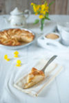 Pomeriggio piovoso e ventoso, un clima pessimo per il mese di maggio! Avevo voglia di torta di mele, quella classica che non facevo più da tanto. Scartabello tra le mie ricette, perlopiù ritagli di giornali o pagine strappate qua e là da riviste di cucina, e ritrovo un vecchio appunto con la 'quattro quarti alle mele', la più classica tra le torte di mele. Semplicissima e veloce...controllo gli ingredienti e siccome li ho tutti in casa mi metto al lavoro. E' la prima volta della mia nuova tortiera di alluminio, così la battezzo subito!