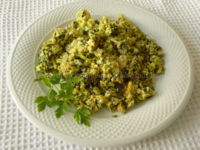 Uova strapazzate con zucchine, erbette, ricotta e profumo di aromi