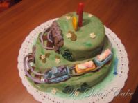 Questa è la mia ultima fatica. Un cake al cioccolato con farcia alla nutella, ricoperta di mmf, fondant e zucchero colorato, per un primo compleanno di un maschietto.