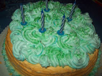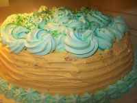 Poichè le ho fatte , questa ed il vintage cake..lo stesso giorno..qua non avevo più luce per le foto ed ho dovuto fotografare il dolce direttamente in frigo..Per l'idea ho copiato spudoratamente dalla wilton.Ho solo cambiato i colori e poi ho voluto provare una nuova tecnica di decoro che mi è piaciuta tanto tanto..Praticamente ho fatto la panna tutta colorata con le striature di colore..volete sapere come?E' stato facile facile..si tratta di prendere la sac a poche e di passarla all'interno con delle striscette di colore--io ho intinto uno stuzzicadenti nel colore e l'ho passato all'intern [...leggi]