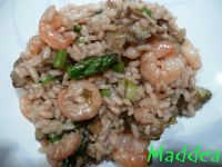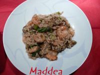 Dopo diversi giorni a base di brodini e minestroni (causa febbre), ho deciso che meritavo qualcosa di buono......allora ho aperto il frigo, sempre strapieno di cose, e sbirciando nei vari angoli, ho trovato carciofi e asparagi. Ho pensato subito ad un risottino........ma mancava qualcosa....e pensa che ci ripensa.....ma si dei bei gamberi e il risotto è fatto!!!