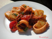 Tagliare i calamari a rondelle privandoli della pelle scura.