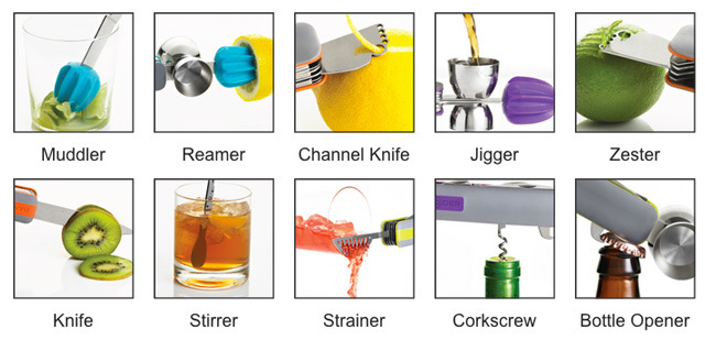 In principio fu il coltellino multiuso dell’esercito svizzero e, diciamolo, era l’arma più potente in dotazione ai militari della placida Elvezia. Vennero poi le varianti e il pericoloso oggetto si trasformò in un pratico necessaire per l’uncinetto. L’ultima versione, in ordine di tempo, è questo splendido completino da cocktail, Bar10der, che si fa apprezzare per la completezza dell’offerta. Taglia, spreme, mescola, filtra e ti fa pure la buccettina per decorare. Ecco, se avete un bartender del cuore è giunto il momento di mostrargli la vo [...leggi]
