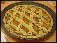 Oggi ho preparato una ricetta che da un po’ di tempo mi gira per la testa,volevo fare una crostata la cui frolla fosse un po’ più ricca del solito,la volevo con le gocce di cioccolato,quindi ai soliti ingredienti per la pasta frolla aggiungeremo 100 gr di gocce di cioccolato ed un vasetto di marmellata di pere. Una volta ottenuta la frolla,la lasceremo riposare per mezz’ora nel frigorifero. Tireremo l’impasto con l’aiuto di un mattarello e li daremo la forma della nostra tortiera. Riempiremo con un vasetto di marmellata di pere e copriremo c [...leggi]