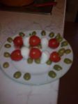 pomodorini ciliegino, bocconcini di mozzarella, olive snocciolate verdi.