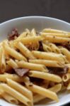 Ingredienti per 4 persone350 gr. di pennette rigate200 gr. di carne di capretto a piccoli pezzetti6/7 cucchiai di olio extravergine d'oliva2 cipolle biancheorigano e sale q.b.