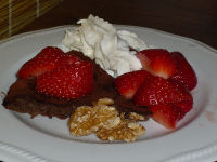 Frittata al cioccolato e noci, ricoperta di panna e fragole