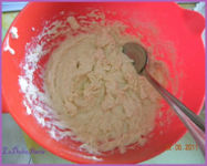 Sbattere il burro con lo zucchero,unire le uova,e poi la farina di mandorle e la farina.