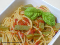 Le zucchine al pomodoro, che trovate qui, sono ottime come contorno ma buonissime anche per condire un piatto di spaghetti, basta aumentare un poco la quantità di pomodoro.