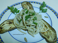 Sono impegnatissima fra compiti da preparare e da correggere e carte da scrivere per la scuola (non si finisce mai!) ma trovo il tempo per postarvi questa ricettina appena fatta, semplice ma d'effetto. Viene da veganblog.it e l'ho realizzata con la crema alla soia che mi ha gentilmente inviato l'azienda CO.DA.P.. Devo dire che gli spaghetti mi sono piaciuti molto e che ne ho mangiato una porzione molto più abbondante di quella (misera) che ho fotografato.