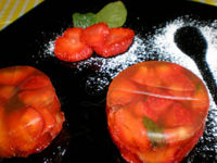 (dosi valide per 4 persone)Ingredienti:300 gr. di fragole; una bustina di thé verde; 20 gr. di gelatina in fogli; 3 cucchiaini di zucchero semolato; 2 foglioline di menta; 200 ml. d'acqua calda.Preparazione:Pulite le fragole e tagliateli in pezzi irregolari. Pulite la menta e stracciatela più o meno a metà a seconda la grandezza delle foglie.Ammollate la gelatina in acqua fredda. Preparate nel frattempo il thé, dolcificatelo e scioglietevi la gelatina, ben strizzata. Lasciate raffreddare.Versate un po' di gelatina sul fondo di 4 mini stampini e fate rassodare in fr [...leggi]