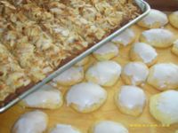 Patrizia ha preparato questi squisiti biscotti: nel vassoio quelli di mandorla e sul tavolo di lavoro quelli al limone ricoperti di glassa.