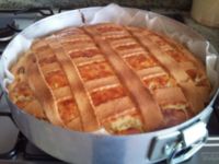 Una golosa pastiera napoletana ancora nella tortiera preparata da Barbara.