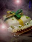 La torta realizzata da Giusi ha una decorazione bella ed elegante circondata da fiori e chiusa da un fiocco lucente.