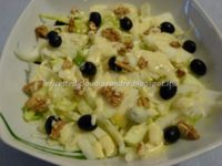 Siccome a casa mia non tutti mangiano il pesce, nel giorno che ho fatto l'insalata con finocchi e salmone, ho dovuto fare anche diversamente per i non amanti di pesce. Per loro l'insalata semplice con finocchi, olive e noci, un pò più povera, ma buona lo stesso....