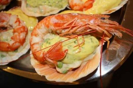 Una fresca insalata di mare, con gamberi e calamari, patate novelle, pomodorini e olive, servita su un letto di insalata verde e condita con leggero pesto di basilico, senza aglio e formaggio. [...]