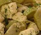 400 g di petto di pollo1 spicchio d'aglio8 carciofi30 g di burro1 ciuffo di prezzemolobrodo1 limonesalepepe Preparazione