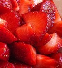 Mondare e lavare le fragole, poi asciugarle e tagliarle a pezzetti.